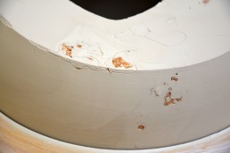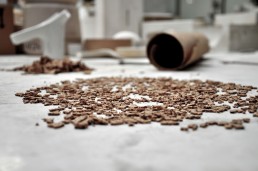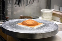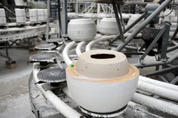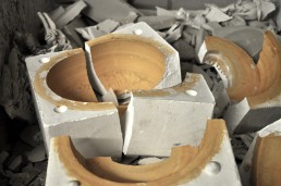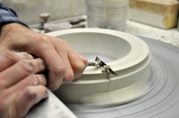 Since the firing process for porcelain is very high, all organic materials added incinerate. With this knowledge as a basis, various experiments were carried out. The question was, which material could generate the most interesting light play.